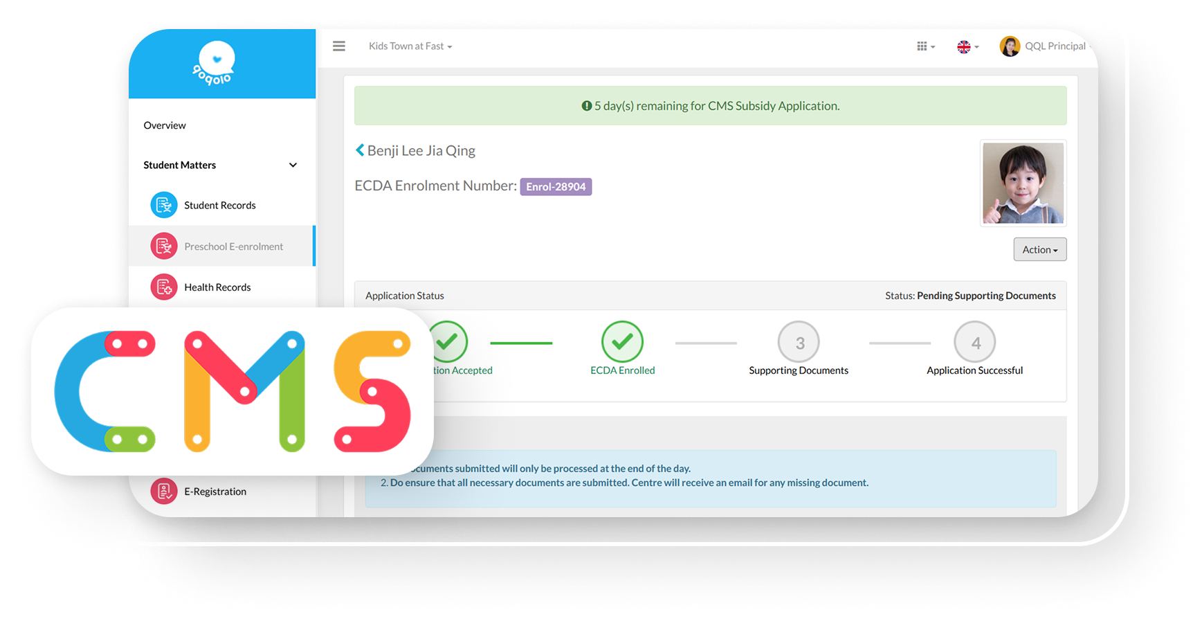 Designed for Singapore preschools, including AOP and POP operators, this integration streamlines compliance with ECDA’s Child Management System (CMS). Save time, reduce manual work, and ensure accurate reporting all directly within Qoqolo.